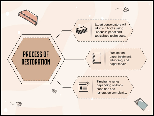 The selection of books for restoration will prioritize those written during or associated with India's freedom struggle and freedom fighters, based on cultural rarity and extent of damage. Once restored, the books will be made available for borrowing or display, pending the library's decision. The time taken to restore a book depends on multiple factors including the state of the book, the skill of the restorer, the extent of the damage, etc.