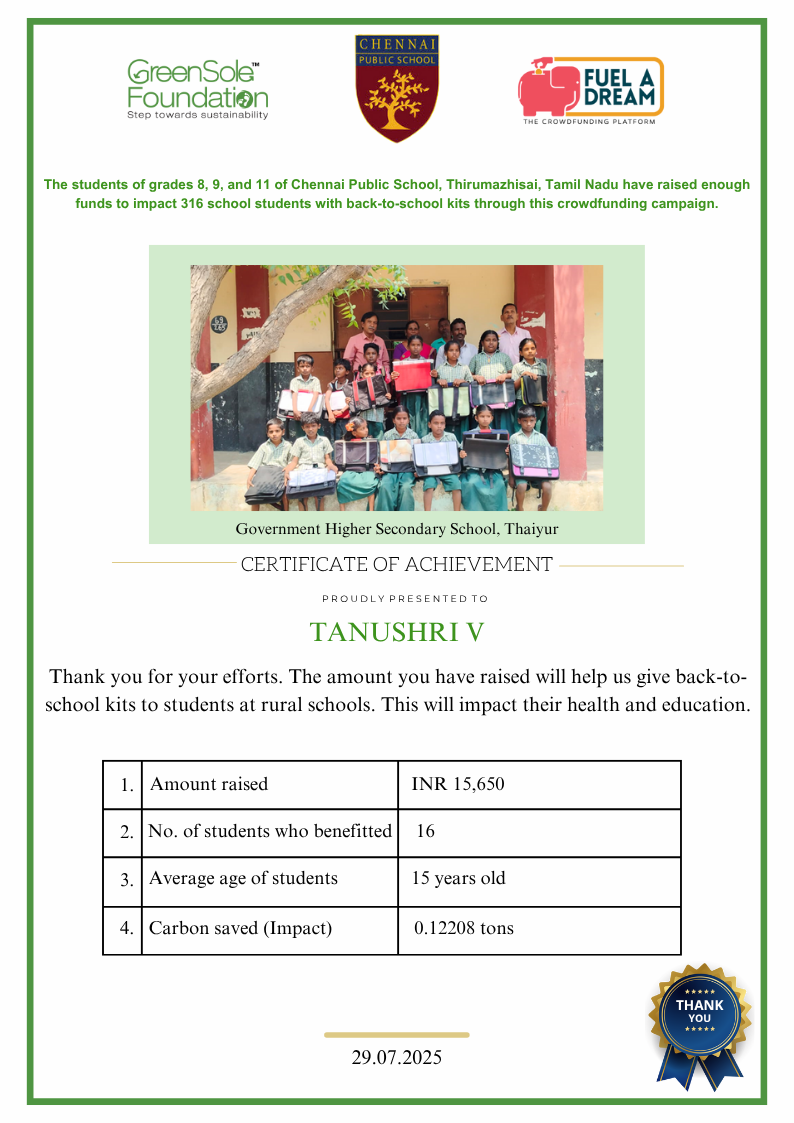 If more funds are raised, the back-to-school kits will be distributed to more schools in Tamil Nadu.