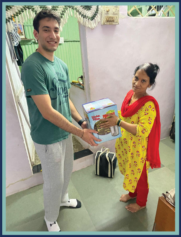 Pic: Me, distributing a water filter to a family in Tardeo.