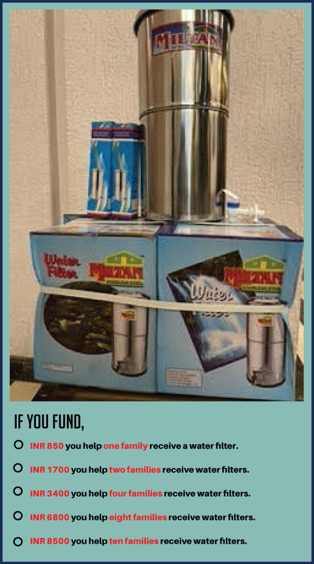 To make this a reality, I need your support. Each filter unit costs INR 850, and I aim to raise INR 85,000 for 100 units.