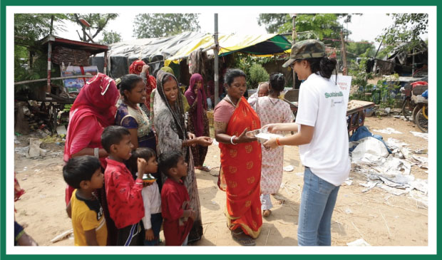 Pic: The Sustainabite team distributing protein-rich flour to Jaipur's slum communities.