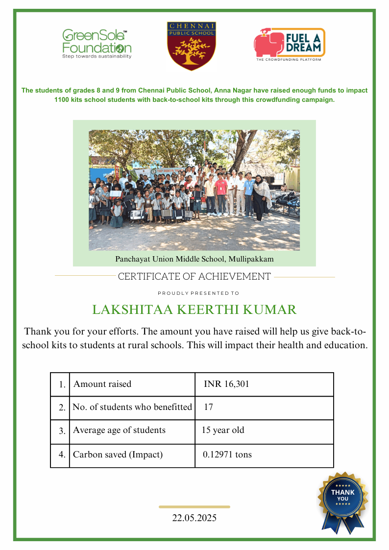 If more funds are raised, the back-to-school kits will be distributed to more schools in Tamil Nadu.