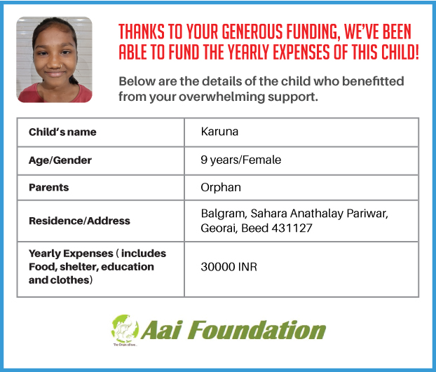 The fact that just INR 2500 can make a difference in the life of an orphaned child for an entire month made me realize that I must do something about it.