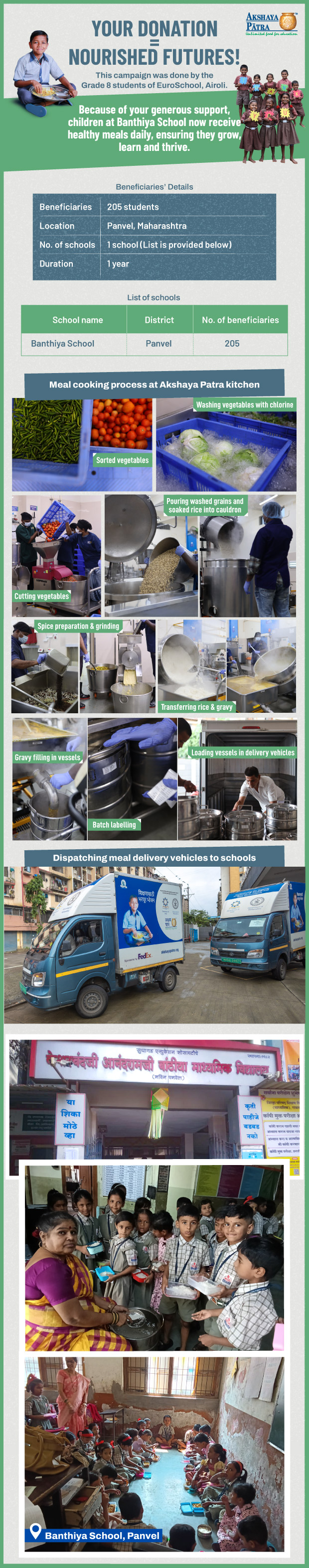 Funding for this campaign is eligible for tax breaks as Akshaya Patra Foundation as an NGO is a registered trust and you can avail of benefits under section 80G of the IT act.