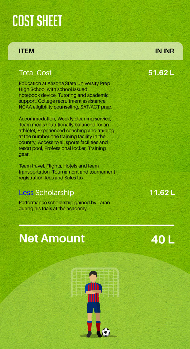 Miha Kline (Director of Recruiting) wrote to me, saying, “We were impressed by the level of your talent, your performance on the field and thoroughly enjoyed getting to know you off the field as well.” The Academy offered me “the most financial assistance” possible with a scholarship of $16,500 (INR 11.2 Lakhs) for the first year.