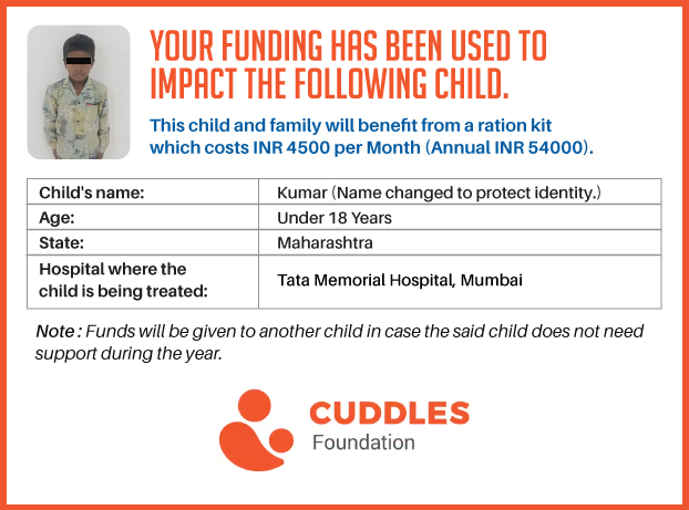 I have undertaken this campaign because this is a critical element in the treatment of these children who go through the difficult journey of fighting cancer. Although there are several people and organizations which sponsor the treatment of financially stressed patients, there are very few that help out with an equally important issue - "THEIR FOOD AND NUTRITION".