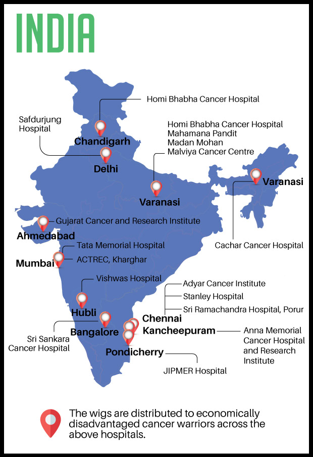 The wigs will be distributed across 16 premier hospitals PAN India serving the disadvantaged.