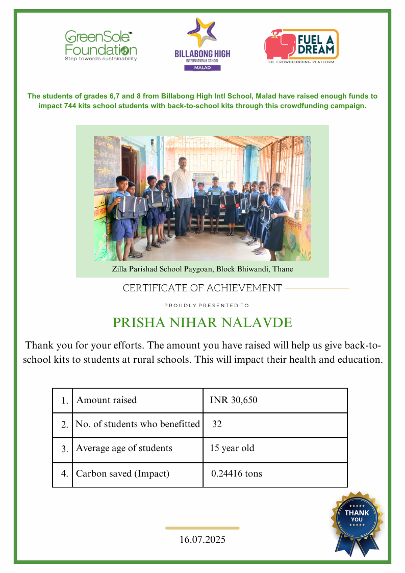 My name is Prisha Nihar Nalavde. I am 11 years-old and a Grade 6 student at the Billabong High International School at Malad, Mumbai.