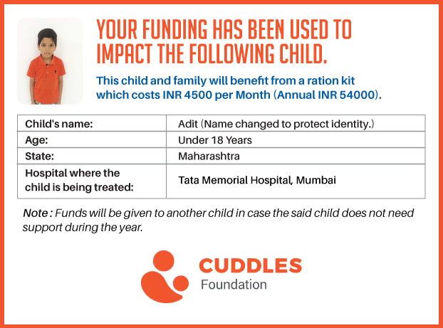 I have undertaken this campaign because this is a critical element in the treatment of these children who go through the difficult journey of fighting cancer. Although there are several people and organizations which sponsor the treatment of financially stressed patients, there are very few that help out with an equally important issue - "THEIR FOOD AND NUTRITION".