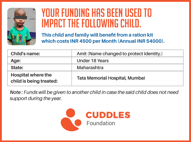 I have undertaken this campaign because this is a critical element in the treatment of these children who go through the difficult journey of fighting cancer. Although there are several people and organizations which sponsor the treatment of financially stressed patients, there are very few that help out with an equally important issue - "THEIR FOOD AND NUTRITION".