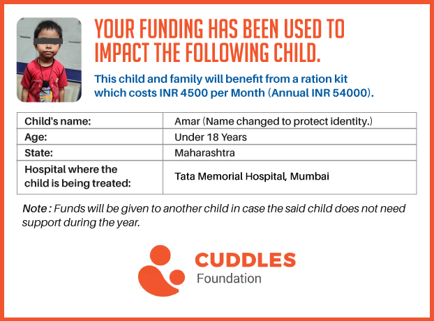 I have undertaken this campaign because this is a critical element in the treatment of these children who go through the difficult journey of fighting cancer. Although there are several people and organizations which sponsor the treatment of financially stressed patients, there are very few that help out with an equally important issue - "THEIR FOOD AND NUTRITION".