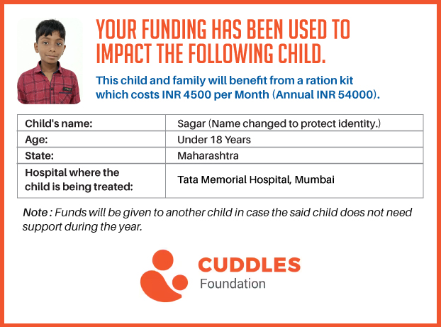 I have undertaken this campaign because this is a critical element in the treatment of these children who go through the difficult journey of fighting cancer. Although there are several people and organizations which sponsor the treatment of financially stressed patients, there are very few that help out with an equally important issue - "THEIR FOOD AND NUTRITION".