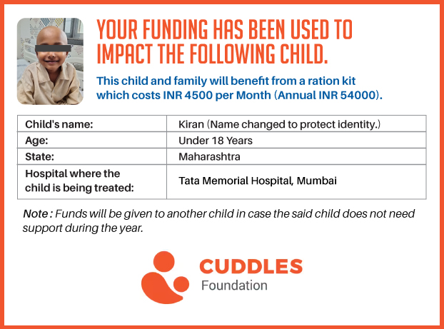 I have undertaken this campaign because this is a critical element in the treatment of these children who go through the difficult journey of fighting cancer. Although there are several people and organizations which sponsor the treatment of financially stressed patients, there are very few that help out with an equally important issue - "THEIR FOOD AND NUTRITION".