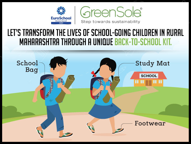 The back-to-school kit costs just INR 950 and gives students a pair of recycled footwear, a recycled study mat to sit comfortably at school or home and a recycled school bag for books. This is a very small amount to impact a student. Fund INR 1900 for example and transform the lives of 2 students.