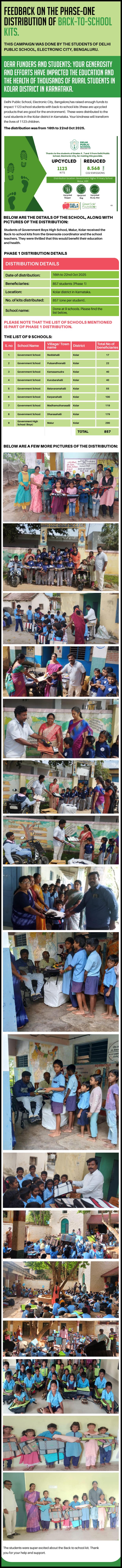 I have undertaken this campaign because I was surprised to learn that many students from low-income homes in Karnataka, who go to school (mainly govt schools) do not have basic school gear like proper footwear or a school bag and often sit on the hard ground in order to study at school.