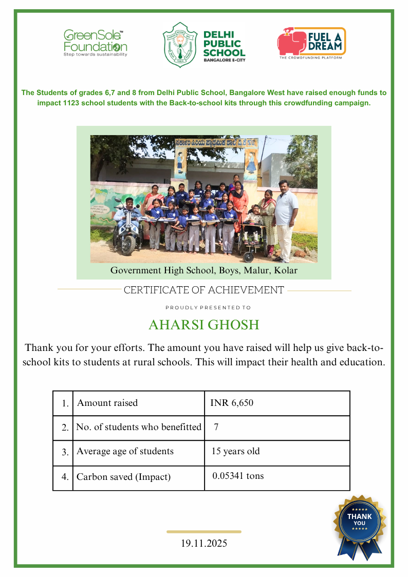 My name i Aharsi Ghosh. I am 13 years old and a Grade 8th student at DPS Electronic City, Bengaluru.