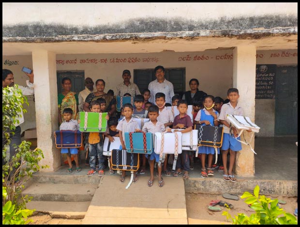PIC: The distribution of Back-To-School kits in a school in rural Telangana.