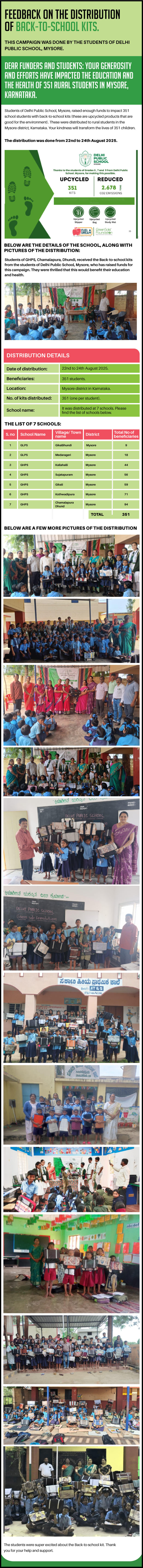 I have undertaken this campaign because I was surprised to learn that many students from low-income homes in Karnataka, who go to school (mainly govt schools) do not have basic school gear like proper footwear or a school bag and often sit on the hard ground in order to study at school.