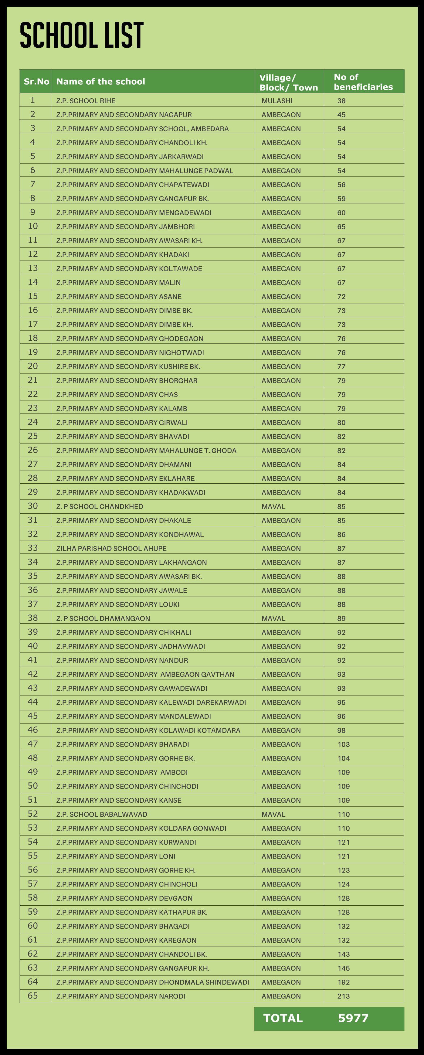 BENEFICIARY INFO : SCHOOLS THAT WILL BENEFIT