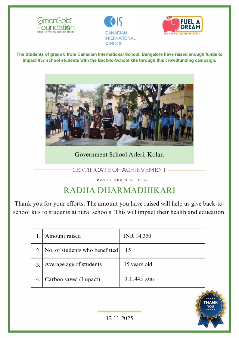 I have undertaken this campaign because I was surprised to learn that many students from low-income homes in Karnataka, who go to school (mainly govt schools) do not have basic school gear like proper footwear or a school bag and often sit on the hard ground in order to study at school.