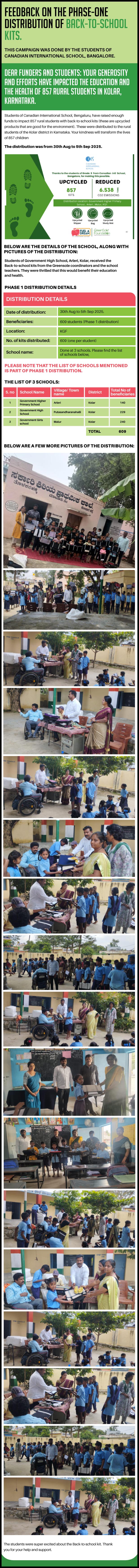 I have undertaken this campaign because I was surprised to learn that many students from low-income homes in Karnataka, who go to school (mainly govt schools) do not have basic school gear like proper footwear or a school bag and often sit on the hard ground in order to study at school.