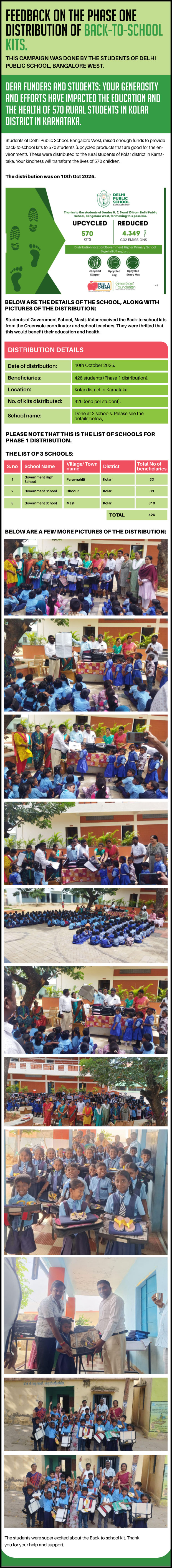 I have undertaken this campaign because I was surprised to learn that many students from low-income homes in Karnataka, who go to school (mainly govt schools) do not have basic school gear like proper footwear or a school bag and often sit on the hard ground in order to study at school.