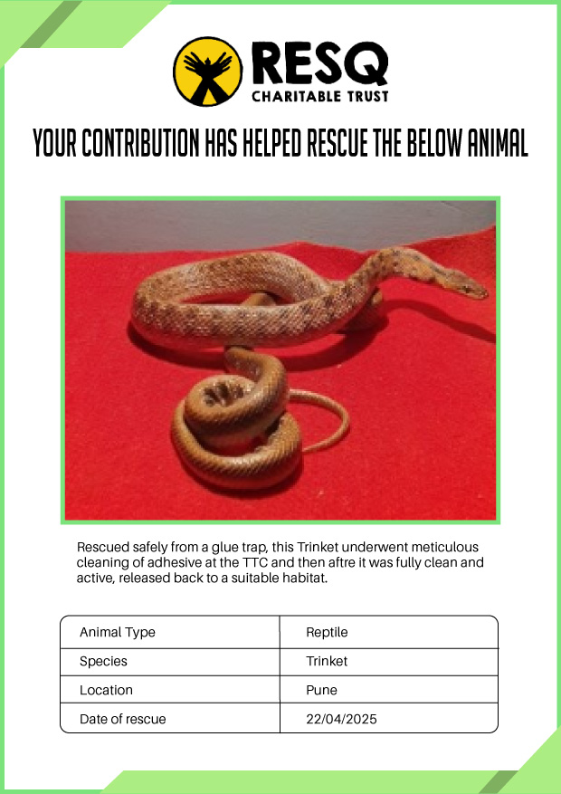 We were delighted to learn that the NGO RESQ works tirelessly to help animals in need. Thousands of wild animals come to RESQ annually who are either injured, sick, orphaned, or victims of wildlife trafficking and illegal captivity. The NGO is authorised by the Government of Maharashtra to conduct state-wide wildlife rescue in collaboration with the Maharashtra Forest Department.