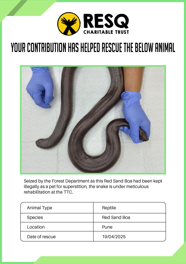 I was delighted to learn that the NGO RESQ works tirelessly to help animals in need. Thousands of wild animals come to RESQ annually who are either injured, sick, orphaned, or victims of wildlife trafficking and illegal captivity. The NGO is authorised by the Government of Maharashtra to conduct state-wide wildlife rescue in collaboration with the Maharashtra Forest Department.