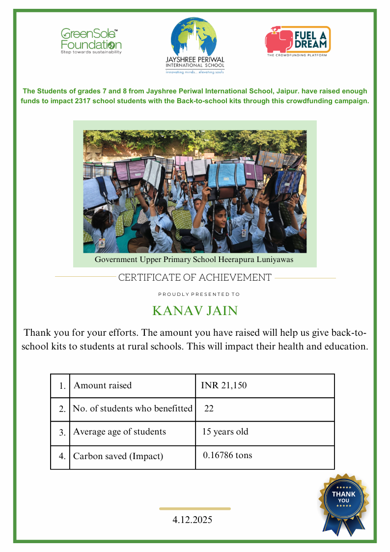 I have undertaken this campaign because I was surprised to learn that many students from low-income homes in Rajasthan, who go to school (mainly govt schools) do not have basic school gear like proper footwear or a school bag and often sit on the hard ground in order to study at school.