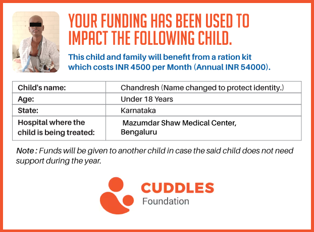 This campaign of mine is being done in partnership with the NGO -Cuddles Foundation and aims to fight hunger and malnutrition in children from low-income homes by giving them a MONTHLY RATION BASKET. This improves their chance of survival by 70% and ultimately does save lives. The baskets are given to children at cancer hospitals across India.