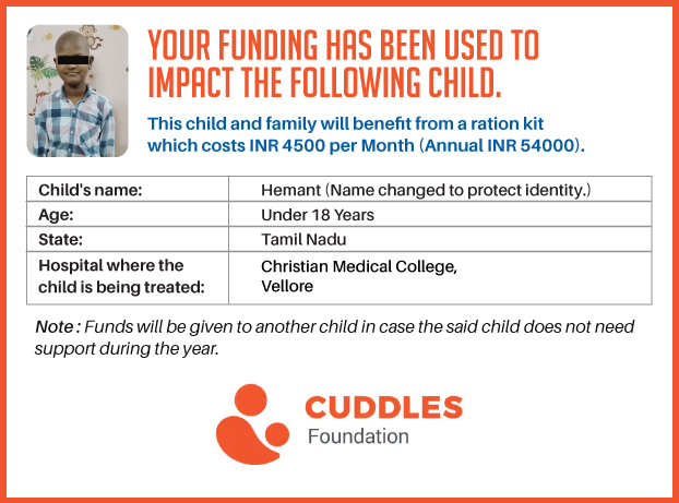 Funding for this campaign is eligible for tax breaks as Cuddles Foundation is a registered trust and you can avail of benefits under section 80G of the IT Act. Cuddles Foundation will generate 10BE receipts which can be used to avail tax benefits. Foreign funding is NOT accepted.