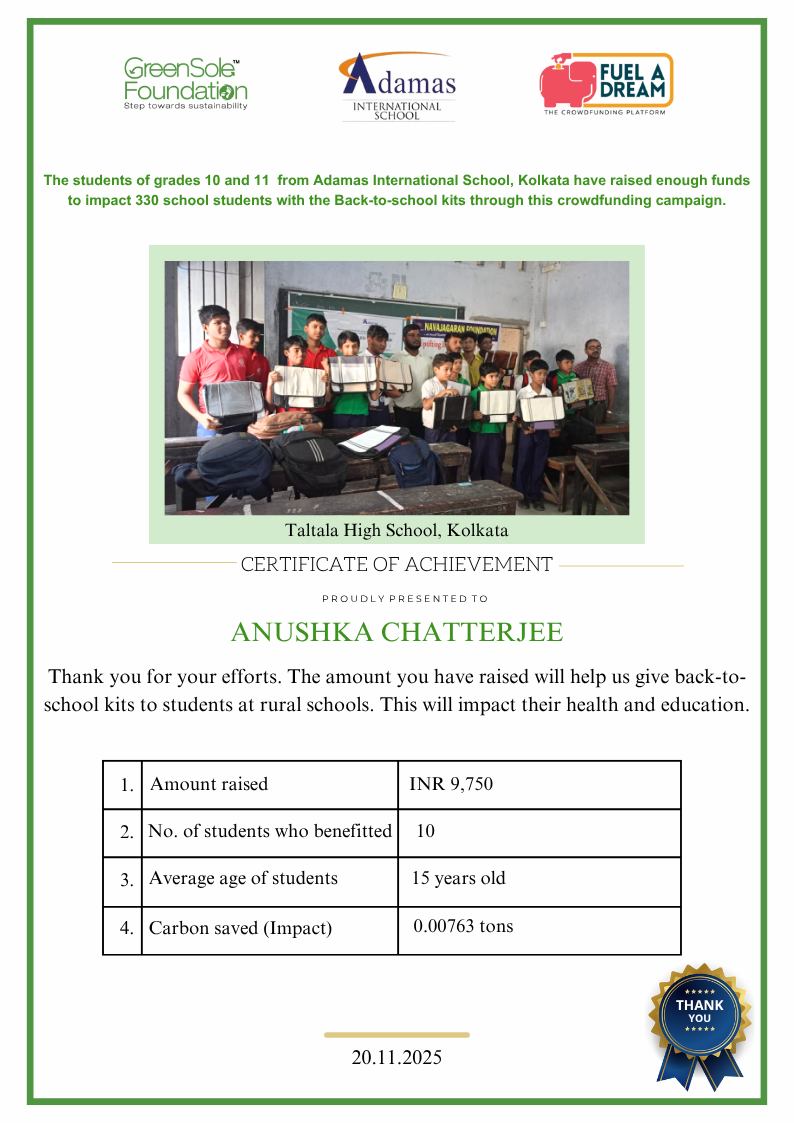 I have undertaken this campaign because I was surprised to learn that many students from low-income homes in West Bengal, who go to school (mainly govt schools) do not have basic school gear like proper footwear or a school bag and often sit on the hard ground in order to study at school.