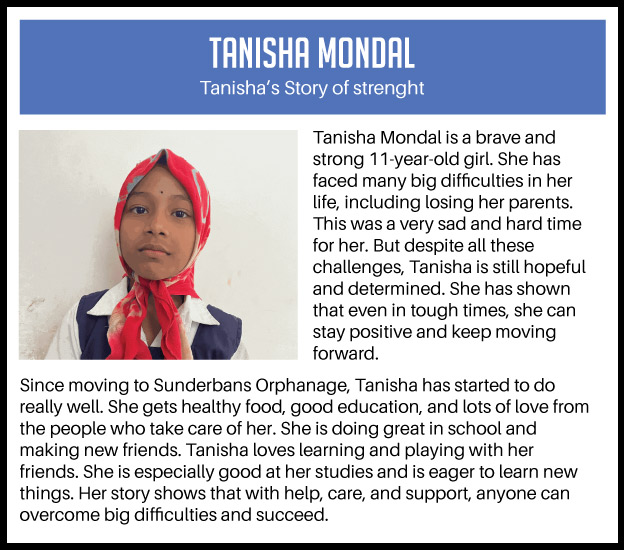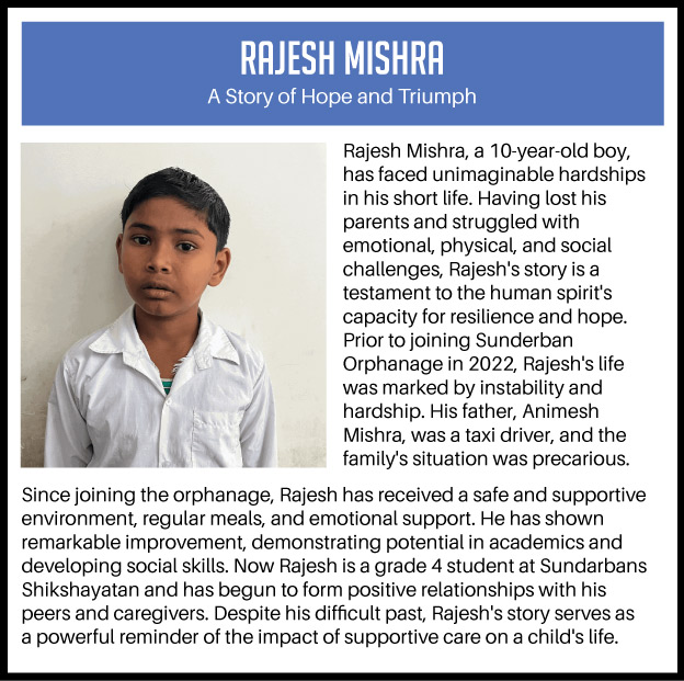 The children residing at the orphanage attend the Sundarban AA Shikshayatan Mission School, conveniently located within the same campus and operated by the Sundarbans Orphanage Mission.