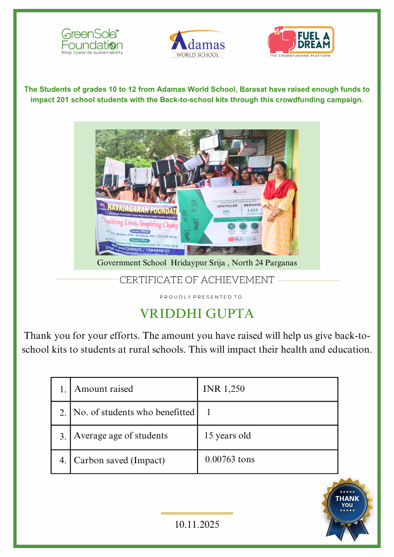 My name is VRIDDHI GUPTA. I am 16 years old and a Grade 11 student at Adamas World School, Barasat.