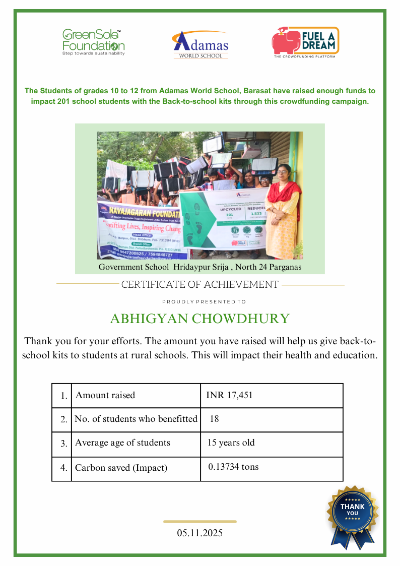 I have undertaken this campaign because I was surprised to learn that many students from low-income homes in West Bengal, who go to school (mainly govt schools) do not have basic school gear like proper footwear or a school bag and often sit on the hard ground in order to study at school.