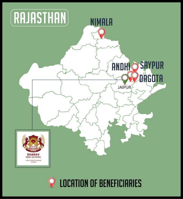 School-going children in many government schools are greatly disadvantaged when they go to school. They walk long distances barefoot, they do not have a proper school bag, and they sit on the floor. All this leads to poor attendance, health issues, and a lack of interest in studies (as their sitting posture itself is very uncomfortable).