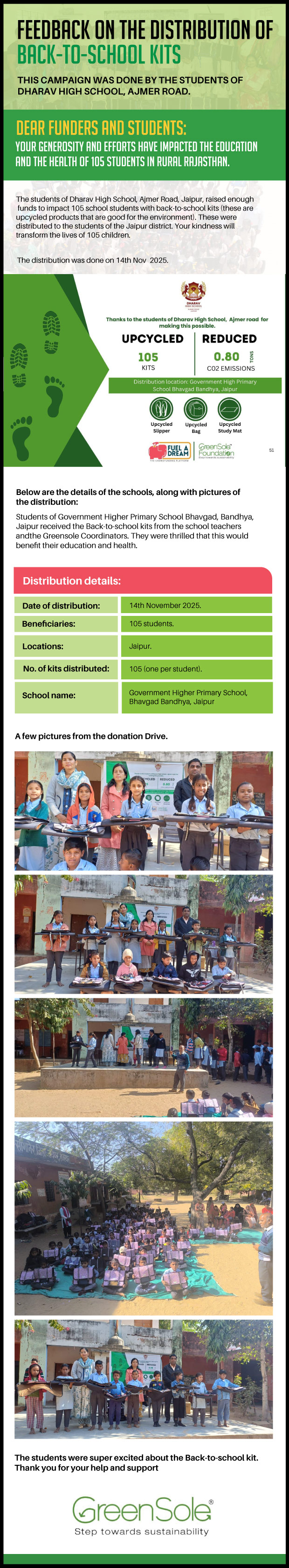 I have undertaken this campaign because I was surprised to learn that many students from low-income homes in Rajasthan, who go to school (mainly govt schools) do not have basic school gear like proper footwear or a school bag and often sit on the hard ground in order to study at school.