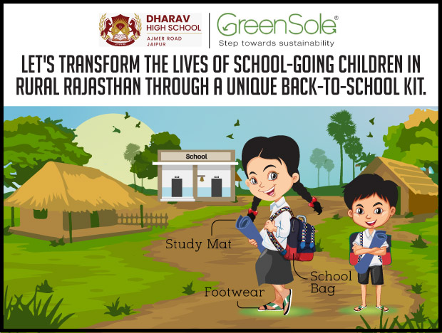 The back-to-school kit costs just INR 950 and gives students a pair of recycled footwear, a recycled study mat to sit comfortably at school or home, and a recycled school bag for books. This is a very small amount to impact a student. Fund INR 1900, for example, and transform the lives of 2 students.