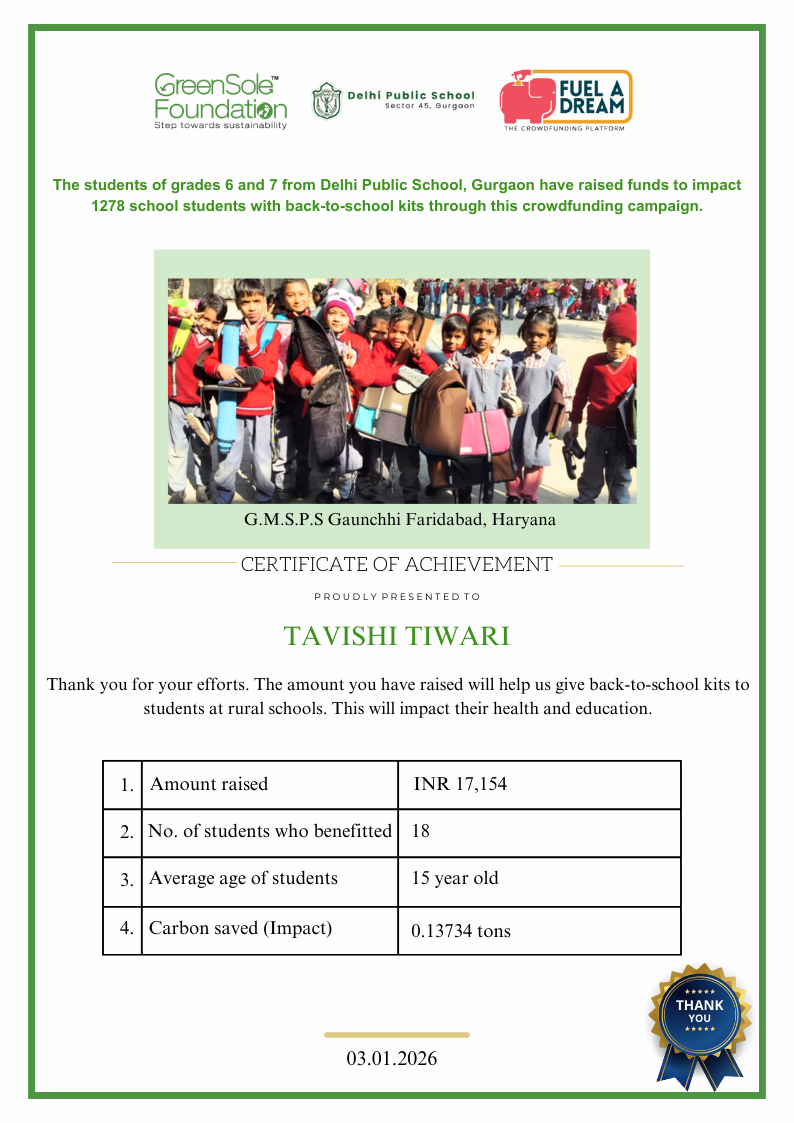 I have undertaken this campaign because I was surprised to learn that many students from low-income homes in Haryana, who go to school (mainly govt schools) do not have basic school gear like proper footwear or a school bag, and often sit on the hard ground in order to study at school.
