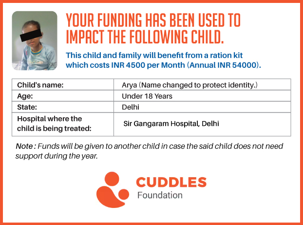 This campaign of mine is being done in partnership with the NGO -Cuddles Foundation and aims to fight hunger and malnutrition in children from low-income homes by giving them a MONTHLY RATION BASKET. This improves their chance of survival by 70% and ultimately does save lives. The baskets are given to children at cancer hospitals across India.