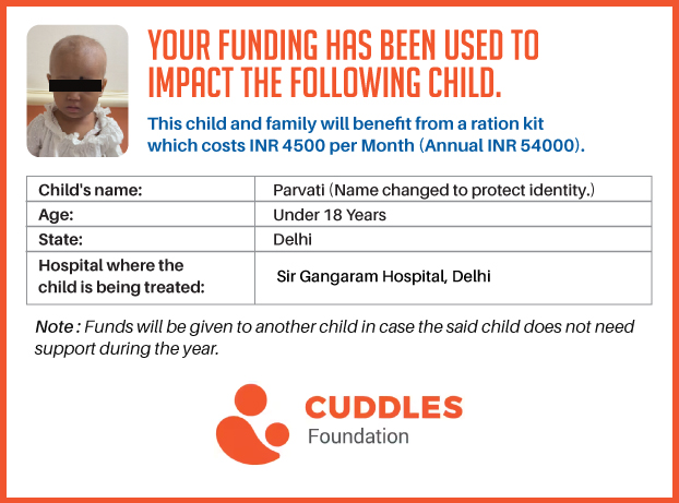 I have undertaken this campaign because this is a critical element in the treatment of these children who go through the difficult journey of fighting cancer. Although there are several people and organizations that sponsor the treatment of financially stressed patients, there are very few that help out with an equally important issue - "THEIR FOOD AND NUTRITION".