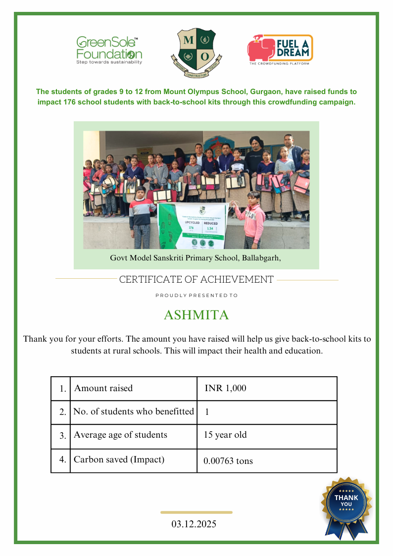 My name is ASHMITA . I am 16 years old and a Grade 11 student at Mount Olympus School, Gurgaon, Sector 47.
