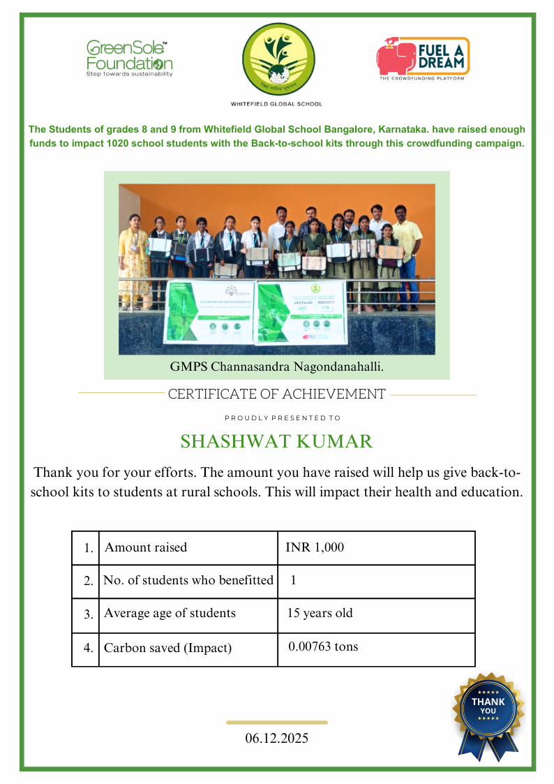 My name is Shashwat Kumar. I am 13 years old and a Grade 9 student at Whitefield Global School, Bengaluru.