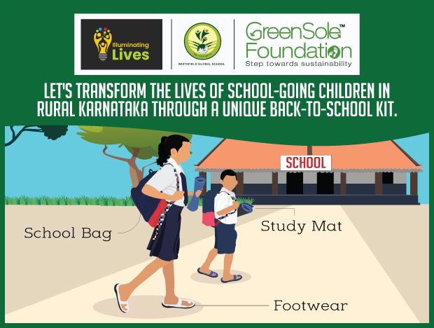 I have undertaken this campaign because I was surprised to learn that many students from low-income homes in Karnataka, who go to school (mainly govt schools), do not have basic school gear like proper footwear or a school bag, and often sit on the hard ground in order to study at school.