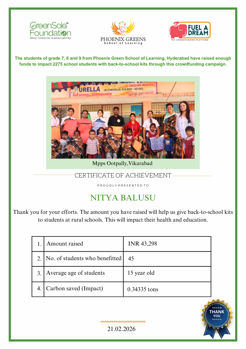 I have undertaken this campaign because I was surprised to learn that many students from low-income homes in Telangana, who go to school (mainly govt schools), do not have basic school gear like proper footwear or a school bag, and often sit on the hard ground in order to study at school.