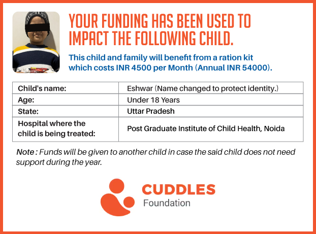 This campaign of mine is being done in partnership with the NGO -Cuddles Foundation and aims to fight hunger and malnutrition in children from low-income homes by giving them a MONTHLY RATION BASKET. This improves their chance of survival by 70% and ultimately saves lives. The baskets are given to children at Sir Ganga Ram Hospital in New Delhi, All India Institute of Medical Sciences (AIIMS) in New Delhi, and Post Graduate Institute of Child Health in Noida.