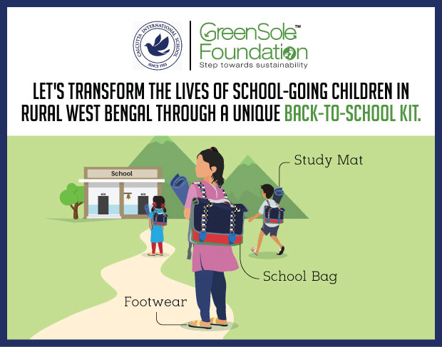 The back-to-school kit costs just INR 950 and gives students a pair of recycled footwear, a recycled study mat to sit comfortably at school or home, and a recycled school bag for books. This is a very small amount to impact a student. Fund INR 2850 for example and transform the lives of three (3) students.