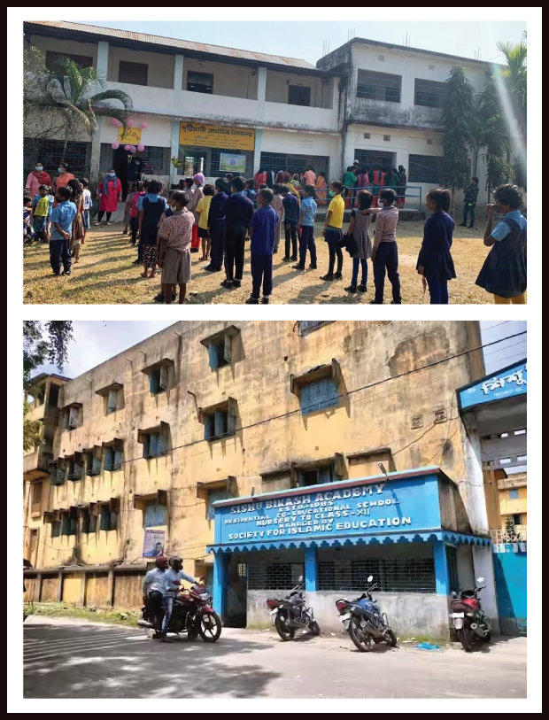 PIC: The facade of the school and students from the Government Primary school in rural West Bengal.