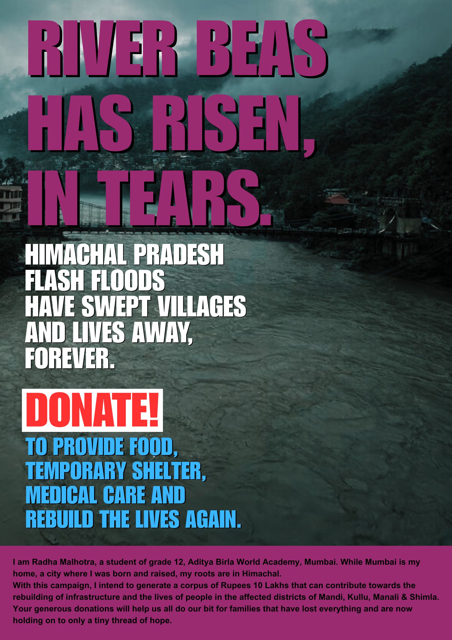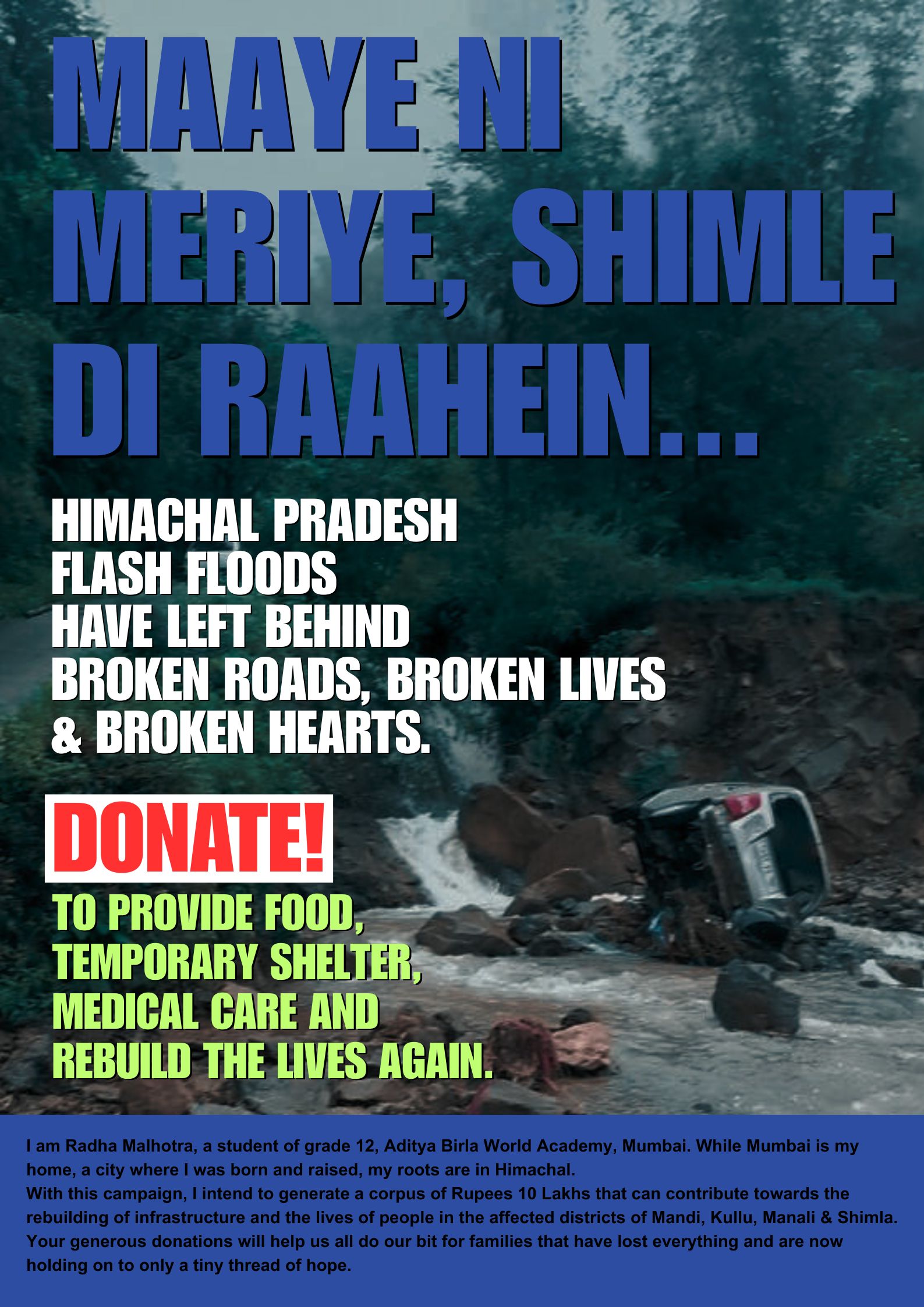 Let's join hands to support the people of Himachal Pradesh in their time of need. Your contribution can help make a difference and bring hope to those affected by the floods. Let's show that we care and work together to make Himachal Pradesh a thriving state once again.