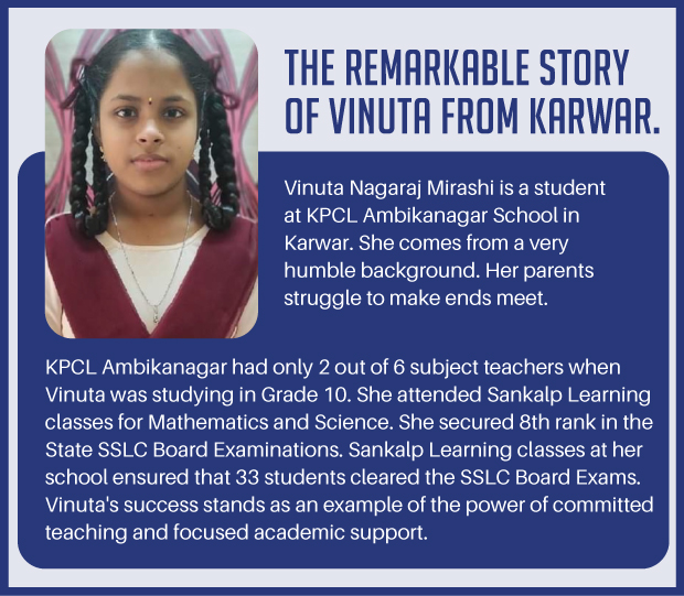 Each teacher at SANKALP teaches students from 40 different schools simultaneously. 1.87 lakh students benefit every day in Karnataka and now there is a need to scale this upto 5 lakh students. The SANKALP model provides access to top teachers and improves the quality of education, resulting in better pass percentages and exam scores. Students attend 300 classes in a year and this helps them to get a clearer understanding of the concepts. It costs just INR 12.50 to provide this unique e-learning classes to a student for a whole year. If you fund INR 2500, you support 200 students for an entire year.